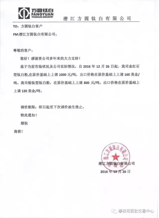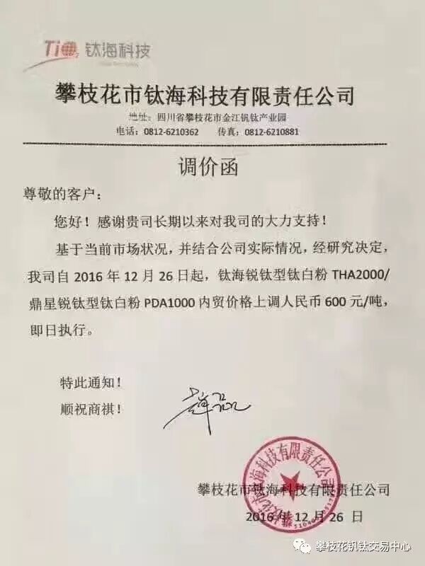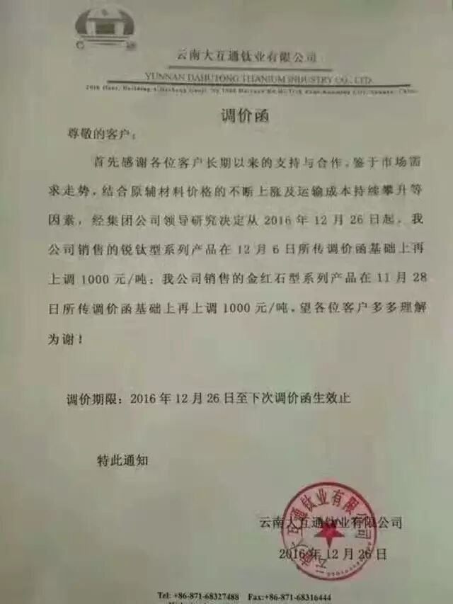 多家鈦白粉企業(yè)紛紛漲價